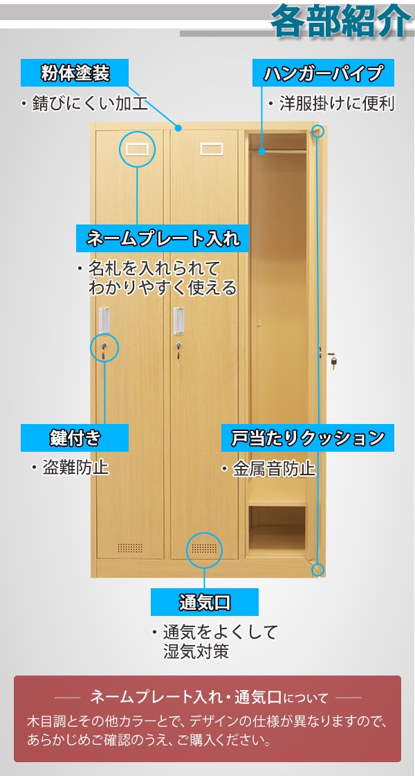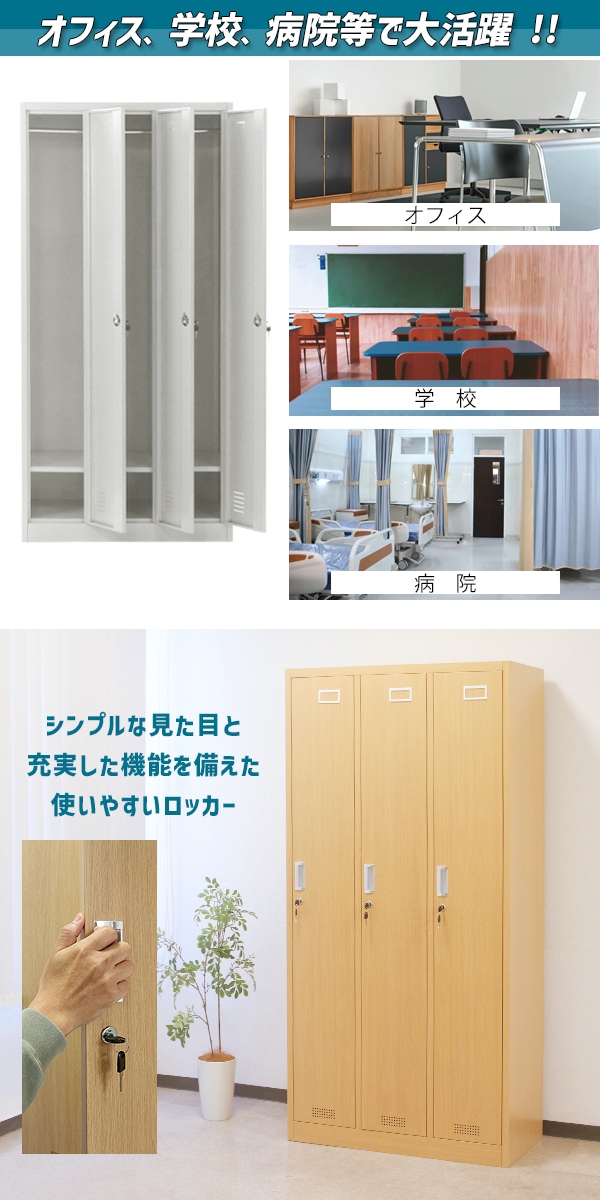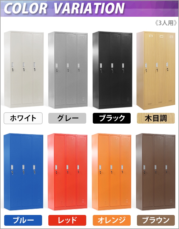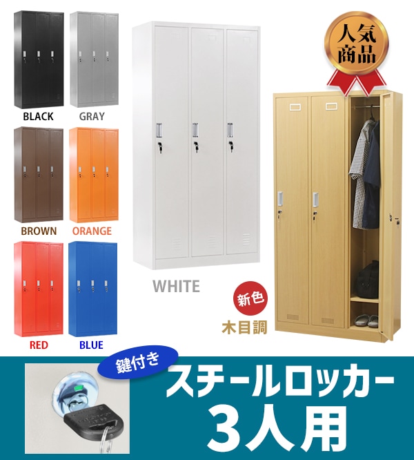 ロッカー おしゃれ スチールロッカー 3人用 選べるカラー 鍵付き スペアキー付 3列1段 スチール製 収納 オフィス 事務所 会社 業務用 オフィスロッカー スチー