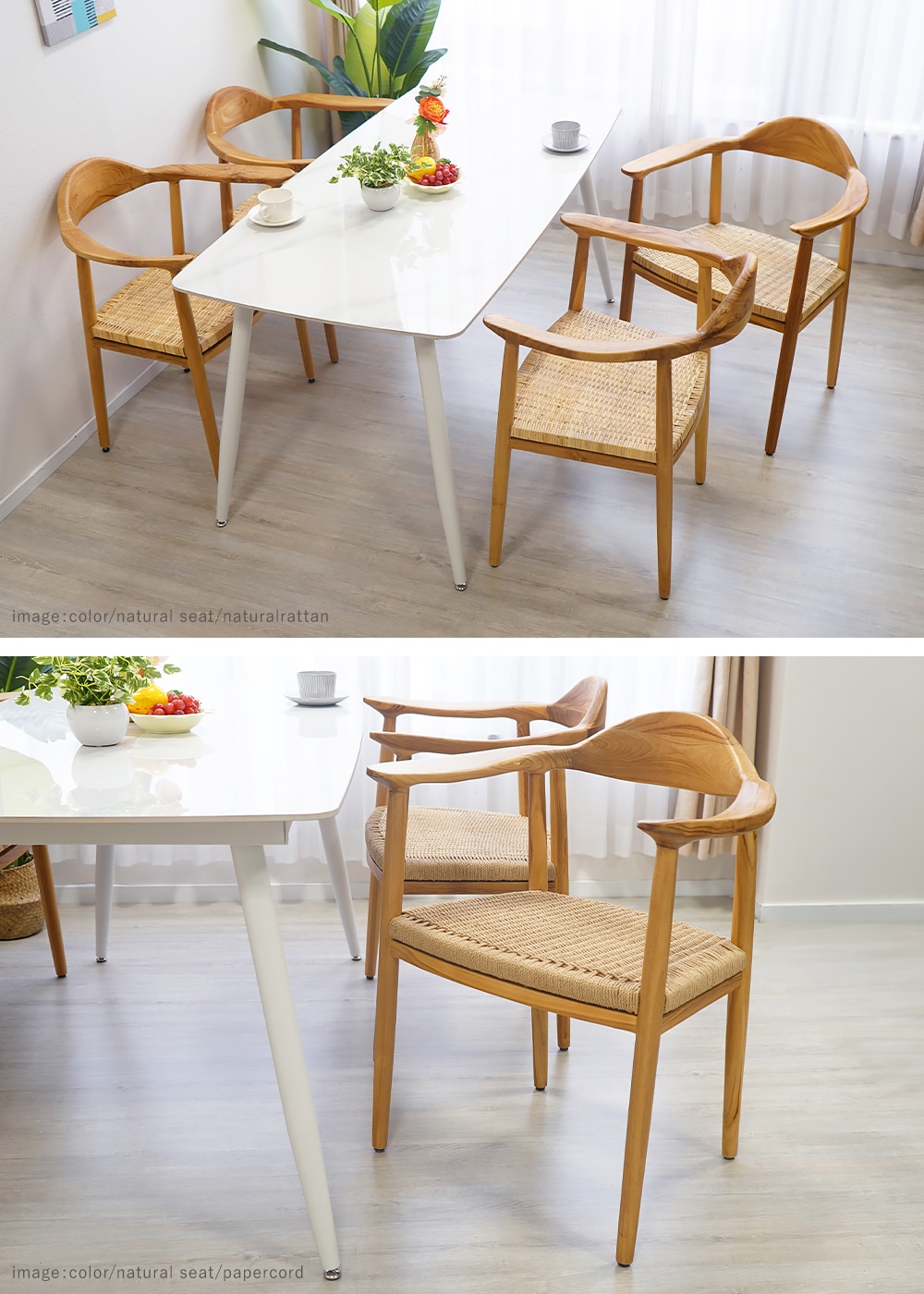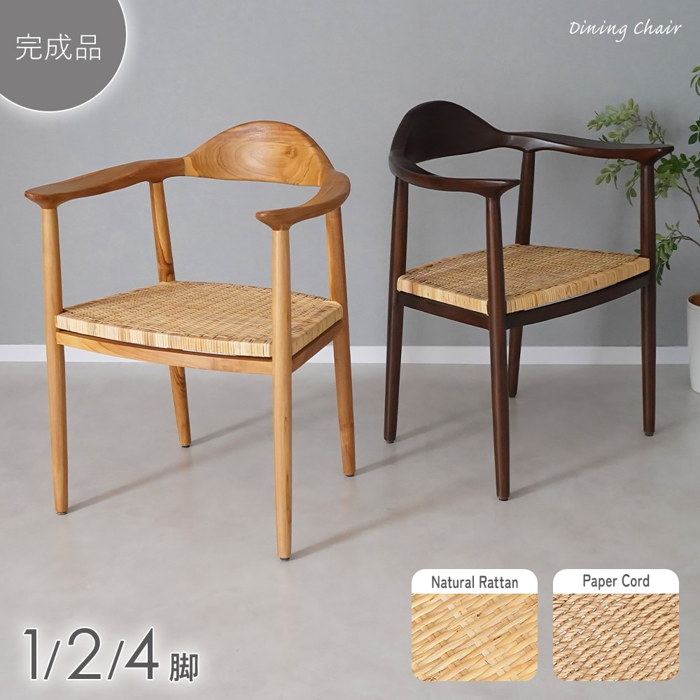 ダイニングチェア 天然木 無垢 チーク 1脚 2脚 4脚セット 食卓椅子 北欧 天然ラタン 籐 ペーパーコード シンプル モダン オシャレ スタイリッシュ インテリア レストラン カフェ 肘掛 ゆったり 完成品 椅子 イス チェア 木製 ナチュラル ダークブラウン
