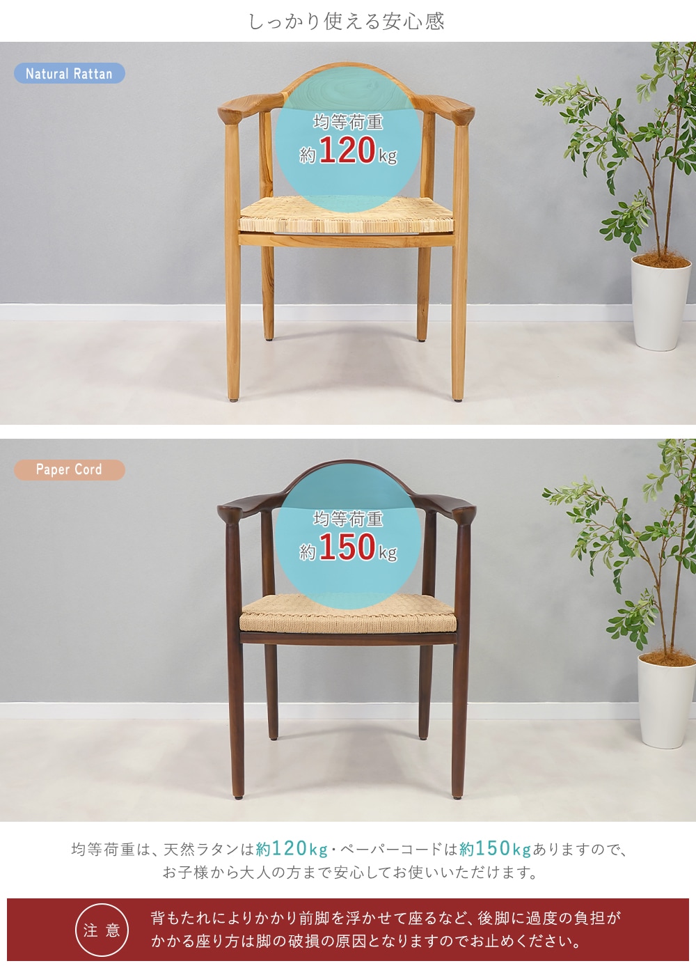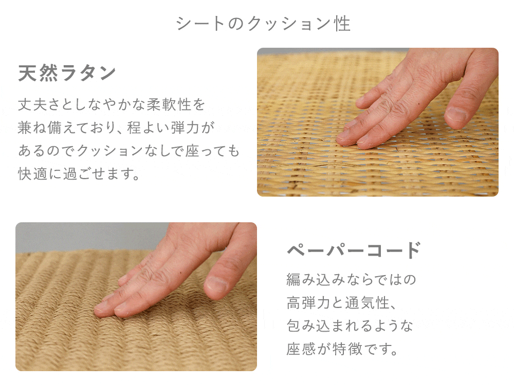 シートタイプ: 天然ラタン/約6.1kg(1脚) ペーパーコード/約7.1kg(1脚) |