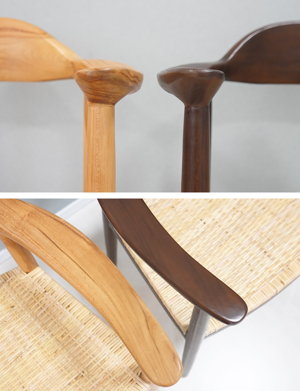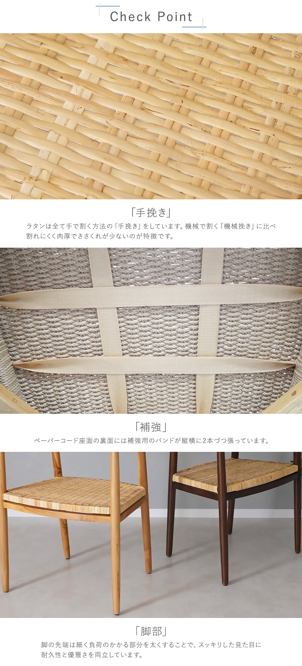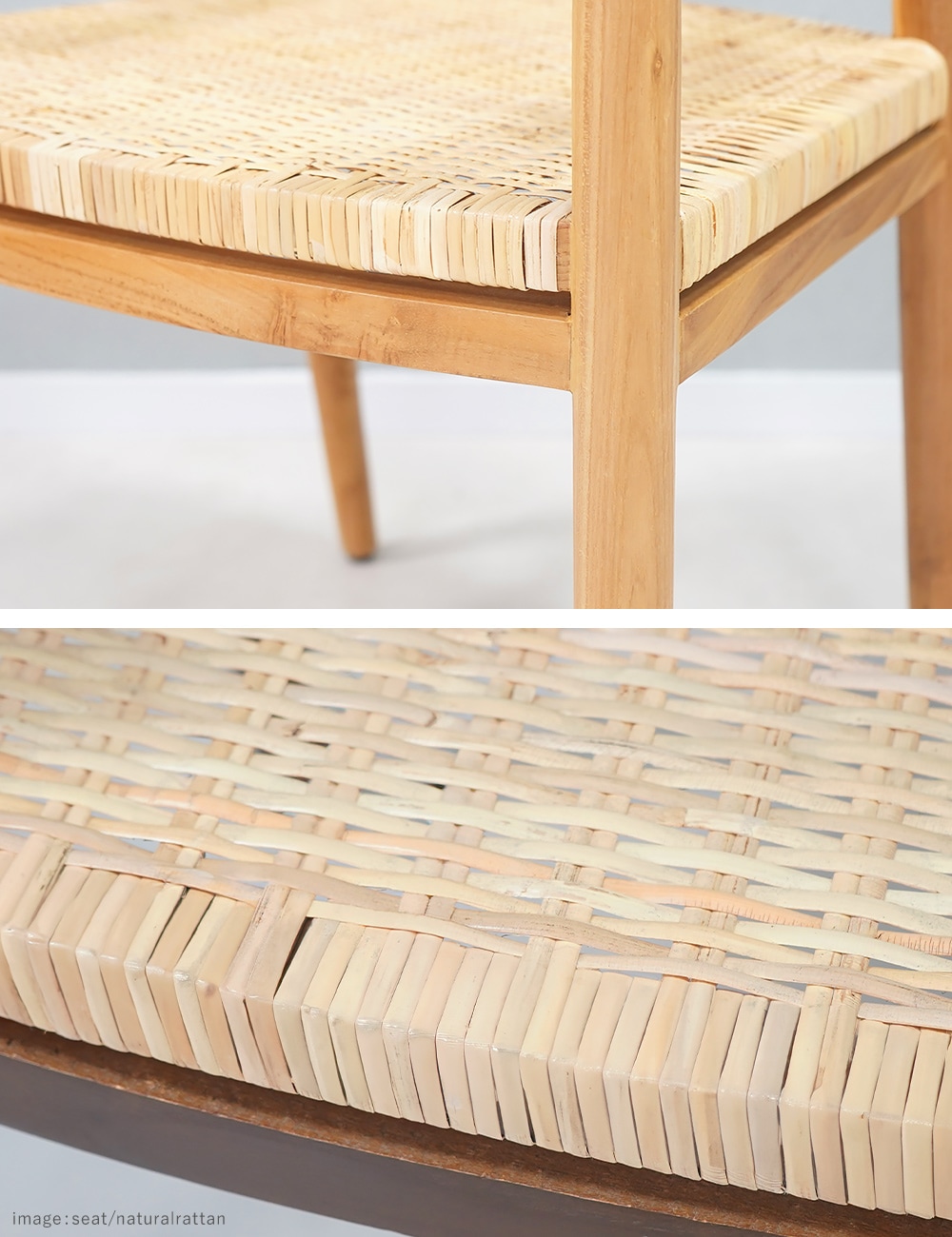 〈共通〉チークウッド[無垢材](本体)、PP[ポリプロピレン](脚裏) 〈張り地〉天然ラタン、ペーパーコード |