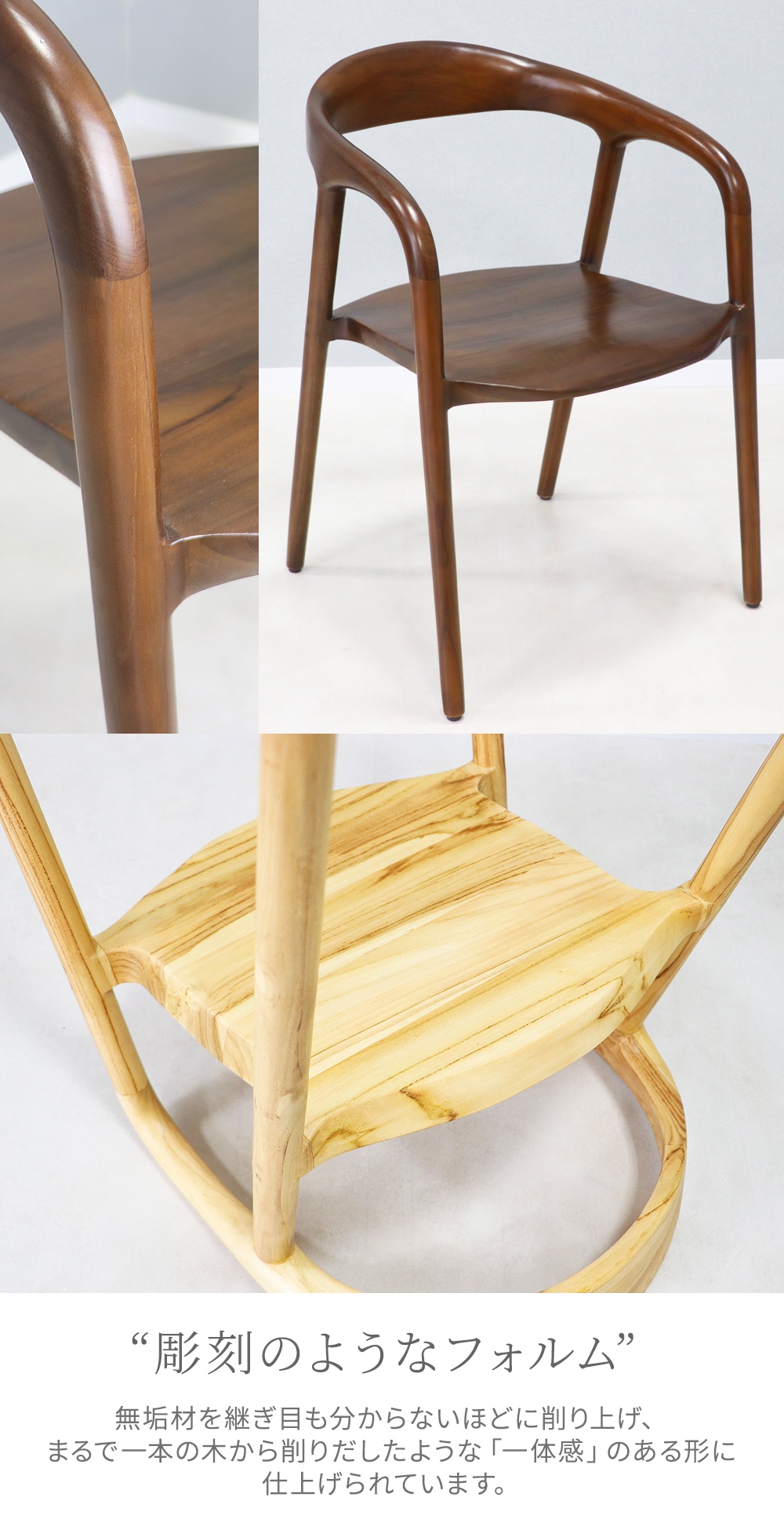 まるで彫刻品! チーク無垢材のみで一体成形されたウッドチェア