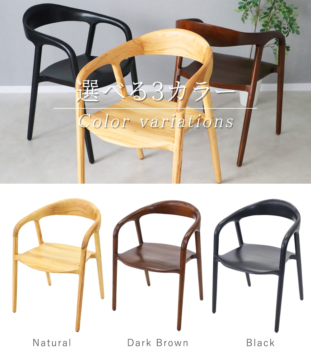 ダイニングチェア ウッドチェア 天然木 無垢 チークウッド 1脚 2脚 4脚セット 北欧チェア 板座 シンプル モダン オシャレ インテリア 肘付き アーム 完成品 椅子 イス 木製 食卓椅子 カフェ リビング ナチュラル ダークブラウン ウォールナット ブラック