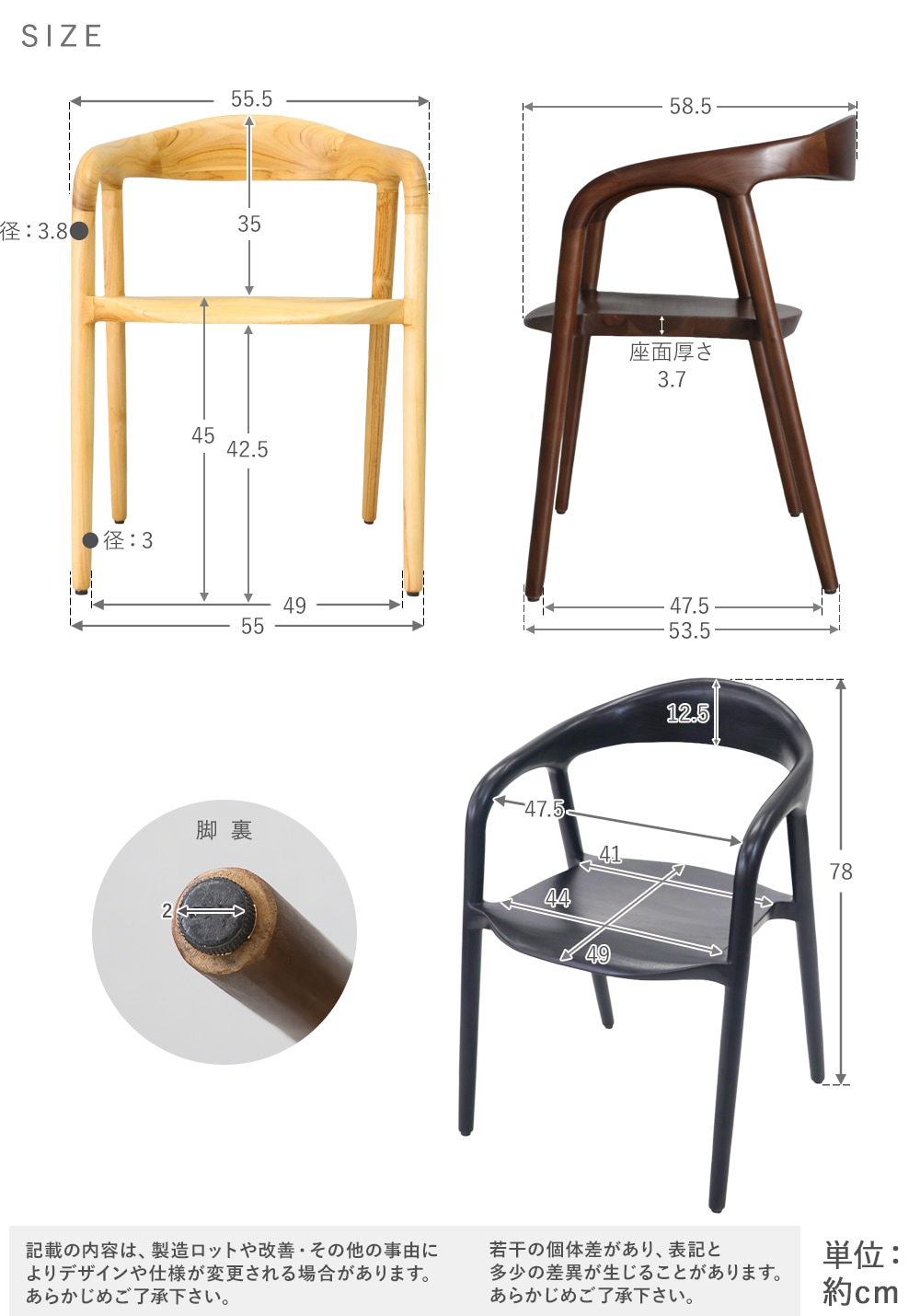 | 材質 | 〈本体〉チークウッド[無垢材]/〈脚裏〉プラスチック |