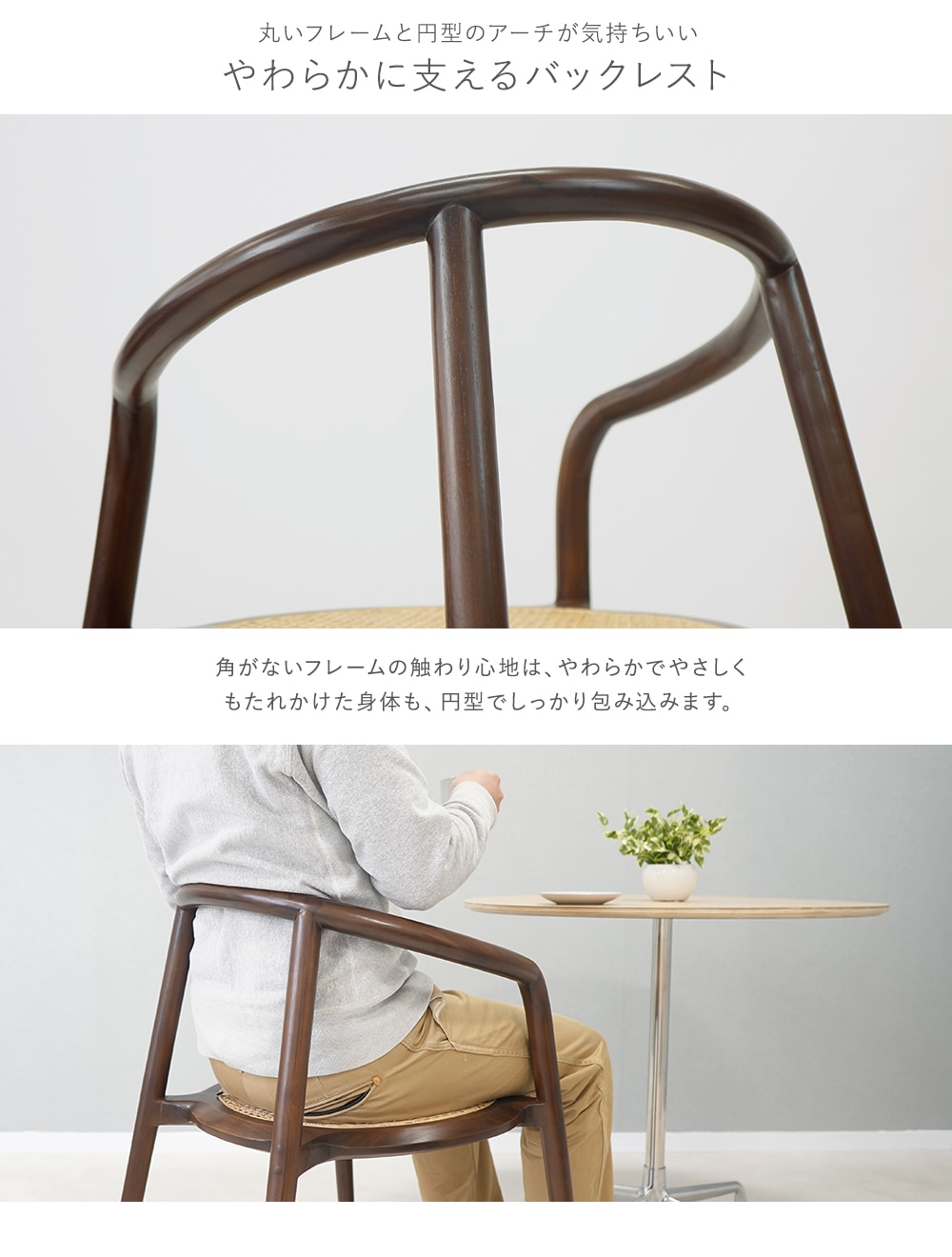 ●軽やかでかわいいラタン座面がアクセントの円型ベースなおしゃれデザインチェア ●角のない円型フレームに円型シートのラウンドフォルムはお洒落でやさしさがあります。 ●八角形の「かごめ編み」で快適な座り心地の天然ラタンです。 ●丸いフレームと円型のアーチのバックレストがやわらかに身体を支えます。 ●腕にも自然にフィットして快適なアームレストフレームです。 ●1本の木で削り出したようなフレームとシートの美しい一体感があります。 ●斜めにカットされたシートエッジでやさしい座り心地です。 ●ラタンシートを長く快適に使用いただけるよう、裏面も丁寧な補強が施されております。 ●シートのフレーム厚は約3.5cmと、しっかりした仕様になっています。 ●銘木『チークウッド』のならではの深みや心地よさを感じられます。 ●なめらかで美しい、自然な光沢感があります。 ●完成品なので、届いてすぐに使用できます。 ■重量:約4.5kg ■耐荷重:約120kg ■材質:〈本体〉チークウッド[無垢材]/〈脚裏〉PP[ポリプロピレン]/〈張り地〉天然ラタン ●新品商品ではありますが、輸入商品の為、多少の擦り傷などがある場合がございますので、ご納得の上ご購入下さいませ。 ●ご購入後、お客様ご都合によるご返品、ご返金等は一切お受け致しておりません。 ●本商品を使用した際に発生したトラブル、事故につきまして、当社は一切の責任を負いません。ご使用に関しましては、全て自己責任にてお願い致します。 |