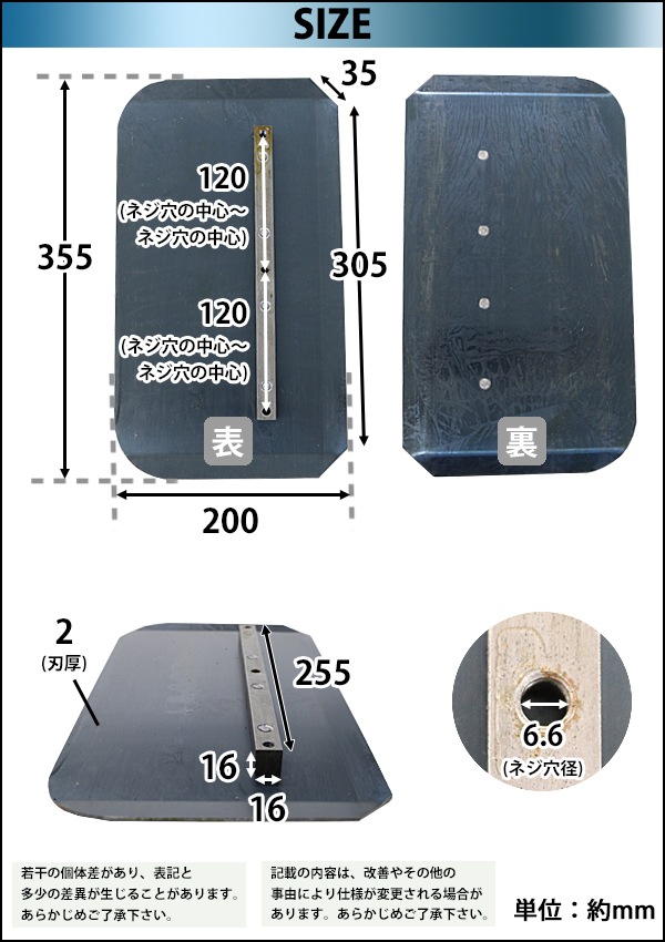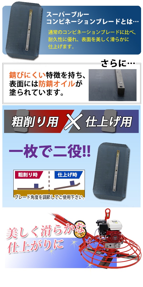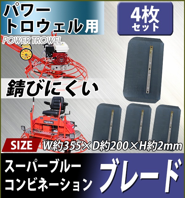 パワートロウェル用スーパーブルーコンビネーションブレード 4枚セット 約W355×約D200×約H2mm ネジ穴径約6.6mm 刃厚約2mm ブレード 羽根 トロウェル トロウェ