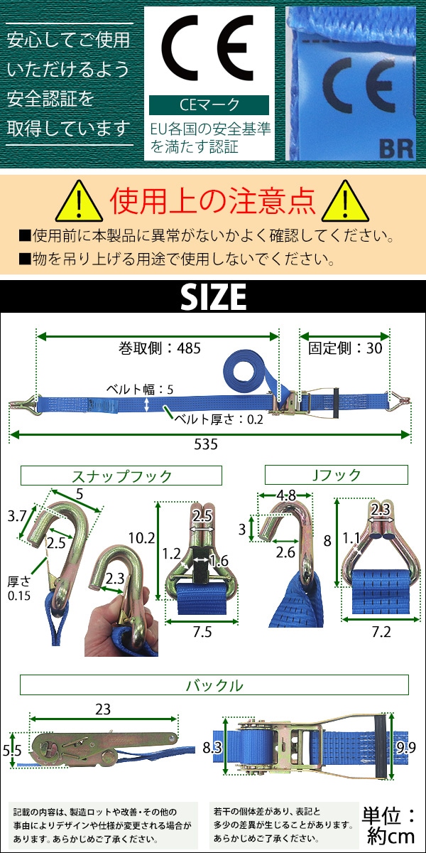 ■全長:約5m(巻取側ベルト:4.85m / 固定側ベルト:0.3m)