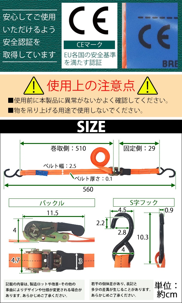 ■全長:約5m(巻取側ベルト:5.1m / 固定側ベルト:0.29m)