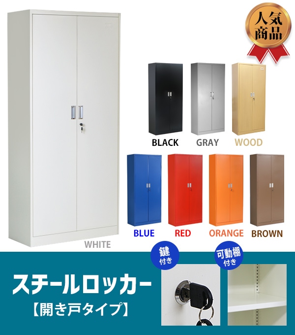 ロッカー おしゃれ スチールロッカー 開き戸タイプ 選べるカラー 鍵付き スペアキー付き 可動棚付き 観音開き 書庫 スチール製 スチール書庫 保管庫 収納 オフィス 事務所 会社 店舗 病院 業務用 スリム かぎ付き 更衣ロッカー スチール キャビネット