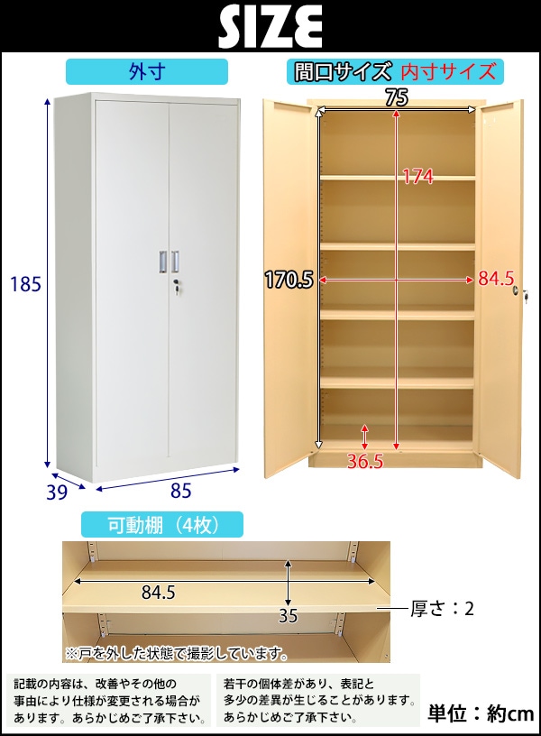 | 内寸 | 約W 84.5×約D 36.5×約H 174(cm) |